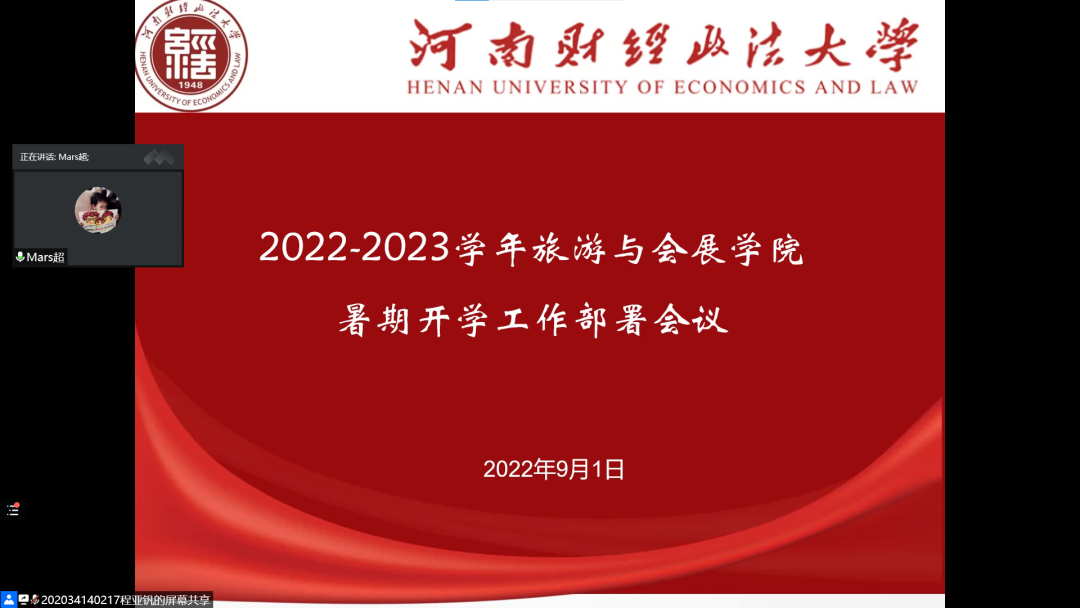 9月1日,太阳成集团tyc234cc于腾讯会议召开2022—2023学年暑期开学工作部署会议。学院团委书记蔡萌、团委副书记马超担任主讲人,学院全体员工参加会议。